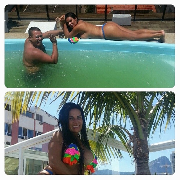 de cima do biquíni e postou uma foto do momento em seu Instagram.